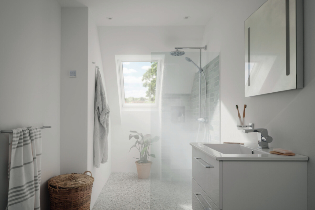 Beim Duschen wird viel Feuchtigkeit an die Raumluft abgegeben. Ohne Lüften steigt in der Folge das Risiko von Schimmelbildung. Foto: Velux/akz-o